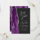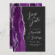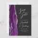 El borde izquierdo de esta elegante y moderna boda, salvo la tarjeta de fecha, cuenta con un borde de agate color morado con falso purpurina plateado. El texto del personalizable combina la escritura a mano gris plateado, el copperplate y las fuentes cursivas en un fondo fuera de negro. El reverso presenta un diseño de agate morado y plateado a juego.