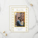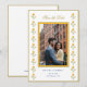 Tarjeta de guardar la fecha amarilla y blanca con borde de caléndula de acuarela con foto de pareja.