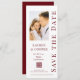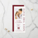 Ahorre la fecha Rosewood rojo y blanco código QR escritura elegante boda moderna tarjetas de ahorrar la fecha imprimible descarga instantánea digital descargable cuenta con un fondo blanco con su foto personalizada. Personalice con su texto editando el texto en los cuadros de texto proporcionados. Diseñado por ©Evco Studio www.zazzle.com/store/evcostudio