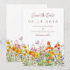 Estos hermosos Ahorros de Fecha presentan un prado lleno de flores silvestres en tonos de rosa, púrpura, naranja y amarillo.