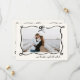 Esta moda y elegante boda, salvo la tarjeta de fecha, incluye tu foto y un marco dibujado a mano, ondulado e ilustrado con un arco, y un elegante guión escrito a mano para un estilo boda de estilo parisino o francés. Esta opción de color clásico es marfil y negro y también incluye un código QR escaneado para su sitio web boda.