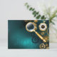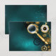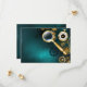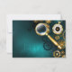 Una lupa antigua con mango dorado y lente convexa sobre el fondo verde con los engranajes dorados y un reloj antiguo. Estilo Steampunk.