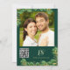 Cree unas tarjetas únicas de color verde esmeralda y oro, que guarden la fecha y estén decoradas con un elegante follaje eucalipto. Las plantillas facilitan la escritura de nombres, fecha y lugar, sitio web y la carga de la foto en el reverso. También puede agregar un código QR a su sitio web boda, asegúrese de agregar su sitio web antes de hacer el pedido para que el código QR funcione como debe.