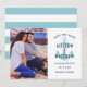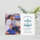 Este aviso de salvamento náutico tiene un tono confiado y costero con un motivo de ancla azul teal y parte posterior de tarjeta de franja ancha a juego, colocado sobre fondo blanco con tipografía naval en negrita. Personalice con la foto de su pareja favorita, nombres y fecha de la boda. Perfecto para bodas de playa, de orilla, o de destino con un rico esquema de color azul teal y naval.