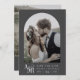 Esta boda de la academia gris oscuro y gris, que no es la fecha de la colección Andrea, es perfecta para un boda moderno. El diseño, oscuro y elegante, presenta un sofisticado monograma de escritura en gris y blanco con un toque monótono único. Personalice la parte delantera de su tarjeta de fecha guardando la foto, su monograma, nombres y fecha de boda. Personaliza la parte posterior con otra foto, tu dirección web boda y un código QR para facilitar a tus invitados más información sobre tu gran día.