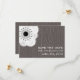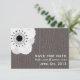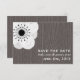 Una boda salva la fecha con un ilustracion de una flor blanca de anémona francesa sobre un fondo inspirado en el bosque de pino. Personalice el texto delante y atrás.
