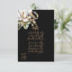 En elegante texto de color dorado sobre un fondo negro que coincide con el conjunto de invitaciones del mismo diseño