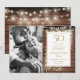 Con delicada vegetación de jardín campestre de acuarela y bonitas luces de cuerda en un fondo de paneles de madera, esta elegante invitación de aniversario de bodas rústica se puede personalizar con su foto especial y la información de celebración de 50 años de aniversario. Diseñado por Thisisnotme