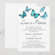 Mariposas azules de acuarela. Tarjeta de boda romántica y elegante. Familiares y amigos se enteran de que tuvieron que posponer sus eventos de boda con esta elegante tarjeta de anuncio de aplazamiento.