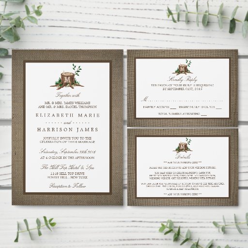 Estas tarjetas de fecha son perfectas para cualquier pareja que planee un matrimonio rústico en el campo. El diseño presenta un diseño de árbol monograma sobre un fondo rústico de efecto burlap. El sencillo diseño puede ser personalizado para adaptarse a su evento especial y será la invitación perfecta para cualquier fiesta con temas de moda de país, incluyendo duchas de novias, compromisos, duchas de bodas, fiestas de cumpleaños y mucho, mucho más.