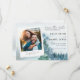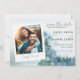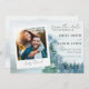 El azul polvoriento rústico de los partidos temáticos salvan el diseño de la fecha con acuarelas y montañas sobre un fondo azul de humo. El diseño presenta su juego de fotos de compromiso en un borde retro, y la tipografía empareja las letras tradicionales con texto moderno con letras a mano. #SaveTheDate #DustyBlueWedding