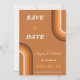Sorprenda a sus huéspedes con estas tarjetas de fecha de estilo retro y fresco, que incluyen arcos de boho y tipografía de los años 70. Añade fácilmente tus detalles haciendo clic en la opción "personalizar esta plantilla".