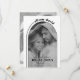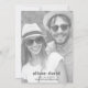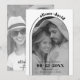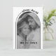 Moderno arco blanco negro y superposición fotográfica boda minimalista Guardar la tarjeta de fecha. Esta tarjeta Save the Date tiene un diseño moderno y minimalista con una combinación de colores en blanco y negro. El punto focal de la tarjeta es un arco que rodea una foto descolorida de la pareja, añadiendo un toque de elegancia. En la parte superior de la tarjeta, los nombres de la pareja se escriben en una elegante letra curvada, siguiendo la curva de una línea que se extiende a la derecha. Si le das la tarjeta, encontrarás otra foto y el sitio web boda de la pareja.