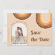 Sorprende a tus invitados con esta genial tarjeta de Save the Date retro, con arcoiris boho, una foto arqueada y tipografía de los 70. Agrega fácilmente tus detalles haciendo clic en la opción "personalizar esta plantilla".