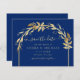 Reserva La Fecha Arco de Boda con Hojas Elegantes de Azul Real y Do