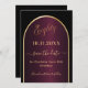 Una tarjeta Save the Date para una fiesta de cumpleaños número 80. Un fondo negro y burdeos, decorado con un arco dorado falso. Personalice y agregue una fecha y su nombre. El texto: Ochenta y Guardar la fecha está escrito con un gran guión de estilo a mano a la moda.