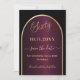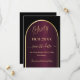 Una tarjeta Save the Date para una fiesta de cumpleaños número 60. Un fondo negro y burdeos, decorado con un arco dorado falso. Personalice y agregue una fecha y su nombre. El texto: Sixty y Save the Date se escribe con un gran guión a la moda de estilo con letras a mano.