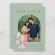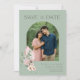 Flor tropical en rosas y verdes con moderno arco foto de boda en la playa guardar las fechas. Personalice con su foto y detalles de la boda. Para obtener mejores resultados, recorte la foto antes de subirla a la plantilla. Contácteme si necesita ayuda con el diseño o la plantilla, estaré encantado de ayudar.