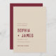 Moderno Guardar la plantilla de la tarjeta de fecha en color rojo y blanco crema oscuro con tipografía limpia fuerte y un arco boho en la parte posterior de la tarjeta. Personalizar de esta boda Guarde la tarjeta de fecha para que se ajuste a sus necesidades, cambie los elementos de texto y los colores si lo desea.