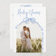 Personaliza esta linda y moderna tarjeta de "save the date" de boda con diseño de arco en estilo francés dibujado a mano en azul y blanco, que presenta una foto de compromiso en forma de arco, detalles de tipografía de escritura a mano con un estético lazo azul coqueto y caprichoso en la parte delantera, y detalles simples de "save the date" y flores dibujadas a mano en la parte trasera. ¡Sube fácilmente tu foto y personaliza esta plantilla de "save the date" con los detalles de tu boda! Desplázate hacia abajo para ver este diseño en más colores y la invitación de boda a juego con forma de arco en la colección completa de papelería a continuación. Las solicitudes de diseño personalizado y las preguntas sobre la plantilla son siempre bienvenidas: haz clic en el botón "mensaje" o envía un correo electrónico directamente a: contact@figandlily