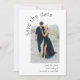 Hermosa sencillez y estilo boho artístico hacen que esta moderna boda arco salve la carta de fecha pop con encanto. Cuenta con una plantilla de fotos en forma de arco en la parte delantera de la tarjeta para cargar la foto deseada. Hay una plantilla de texto en la parte delantera de la tarjeta para personalizar con los nombres de la novia y el novio y la fecha de boda planificada. La parte posterior de esta tarjeta contiene un mensaje de ejemplo con detalles adicionales que personalizar, junto con una plantilla de código QR para facilitar a los huéspedes la visualización de su sitio web boda. Esta tarjeta, que se muestra aquí con un fondo blanco claro, también está disponible en otros colores.