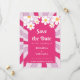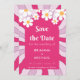Sorprenda a sus amigos y familiares con esta genial tarjeta Save the Date que incluye margarita retro, arca rosa brillante y texto personalizado. Cambie fácilmente el texto haciendo clic en la opción "personalizar esta plantilla".