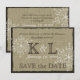Hermosos copos de nieve y el aspecto impreso de arpillera en esta invitación de invierno para guardar la fecha. Cambie el texto según prefiera.