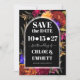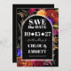 Un arco negro de Boho con marcos de borde transparentes que guarda los detalles de la fecha. El texto en negrita en blanco le da a este otoño Save the Date un ambiente de moda. Los florales son una caída pura. Rico rojo burdeos, naranja brillante con golpes de morado y rosa. La parte trasera también es negra con un ramo de otoño. Este artículo forma parte de la colección floral de otoño moderna. Mándame un mensaje si necesitas ayuda para encontrar elementos coincidentes. Mi nombre es Nelda y me encantaría ayudar.