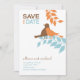 Anuncio chic de salvar la fecha con aves en silueta y enredaderas.