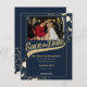 Diseño de pase de temporada de béisbol vintage en azul y dorado, guarde la fecha con foto. Personalice el texto como prefiera.