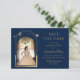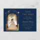 El Celestial Blue Save The Date Birthday Quinceanera Invitation presenta un marco dorado de sol, luna y estrellas sobre un fondo azul. Adentro está tu foto favorita y tu personalizado Quinceanera guarda la información de la fecha. Personalice editando el texto en los cuadros de texto y agregando su foto favorita. Diseñado para usted por ©2024 Evco Studio www.zazzle.com/store/evcostudio