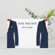 Tarjetas de Save the Dates de boda gay azules y blancas con texto modificable