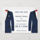 Tarjetas de guardar fechas de boda gay azul y blanco con texto modificable