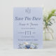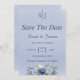 Las invitaciones a guardar Date tienen un fondo azul polvoriento, rosas azules y texto azul oscuro. Son hermosos Twin Spirit Diseña invitaciones para enviar a sus invitados, y todo el texto es personalizable. Aproveche esta oportunidad para crear un evento único y memorable con nuestras invitaciones de personalizable.