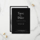 Foto para guardar la fecha. Filtro blanco y negro aplicado a la foto. Fondo negro. Texto blanco. Moderno. Sitio Web de bodas. Redondeada.