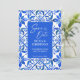 Blue Azulejo Talavera Tejas españolas México elegante plantilla editable de boda guardar las tarjetas de invitación de fecha descarga digital instantánea, colores vivos negrita tipografía casual moderna guardar las fechas