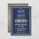 Invite a la familia y amigos a una elegante ceremonia de mitzvah en el bar y celebración por él con este Relieve metalizado azul marino, blanco y falso oro salven la invitación a la cita. Todo el texto es sencillo para el personalizar, por lo que puede incluir cualquier texto con respecto al servicio, lectura de Torah y fiesta. El diseño presenta nombres en hebreo e inglés, Relieve metalizado metálico falso Star of David, tipografía inspirada en el art deco y caligrafía de escritura moderna. ¡Mazel Tov!