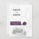 Asegúrese de que sus amigos y seres queridos estén allí para su día especial de boda en Nueva Orleans con estas originales tarjetas de "Save the Date" con forma de Fleur de Lis de barco de vapor de Nueva Orleans. Las tarjetas tienen escrito "Save the Date" en la parte frontal con un diseño original que incluye un boceto de un barco de vapor y un símbolo de Fleur de Lis, con espacio para agregar sus nombres y la fecha de la boda. La parte trasera cuenta con un diseño de símbolo de Fleur de Lis. Rellene la información de su boda y prepárese para dejar que los buenos tiempos rueden! Se muestra aquí en un esquema de color púrpura, negro y blanco. Visite www.zazzle.com/enchantedbayou* para tarjetas, invitaciones y regalos con temática cajún y de Nueva Orleans.