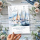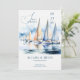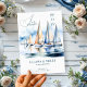 Anuncie su próximo boda de temática náutica con esta elegante acuarela guardar la tarjeta de fecha. Con una encantadora escena costera de veleros deslizándose con gracia a través del agua, este diseño captura la serenidad y el romance de una celebración frente al mar o frente al mar. La paleta de colores suaves y el estilo artístico acuático crean una invitación sofisticada e inolvidable para su día especial. Personalízalo con tus nombres y fotos para un toque realmente personalizado. Por favor, navegue por mi Colección de Bodas de barcos costeros para coordinar artículos o envíeme un mensaje para añadir cualquier plantilla adicional que necesite.