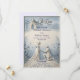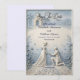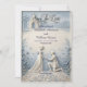 Announce your formal engagement with a romantic, neoclassical aesthetic featuring a dusty blue and cream palette and elegant formal calligraphy.This design relies on a structured hierarchy of classic serif and formal calligraphy, maintaining a clean visual layout with balanced spacing. The artwork illustrates a highly detailed digital bas-relief effect of a kneeling man proposing to a woman in a flowing gown against a domed classical chapel. Rendered in a sophisticated palette of powder blue, slate gray, and off-white, the composition includes a cobblestone path, scattered petals, and a botanical floral border mimicking carved shadows and highlights.This is a flat printed image with a faux carved stone texture effect, not actual raised material.