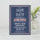 Invitar a la familia y amigos a una elegante ceremonia de mitzvah del murciélago y celebración por ella con esta medalla de oro azul marino, blanco y rosa rosa rosado salven la invitación a la cita. Todo el texto es sencillo para el personalizar, por lo que puede incluir cualquier texto con respecto al servicio, lectura de Torah y fiesta. El diseño presenta el moderno Relieve metalizado de oro rosa Star of David, la tipografía de estilo Art Déco y la caligrafía de escritura moderna. ¡Mazel Tov!