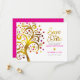 ¡Asegúrate de que todos tus amigos y parientes puedan celebrar el hito de tu hija Bat Mitzvah! Envía este impresionante y gráfico árbol de Relieve metalizado dorado falso con una estrella de David brillante rosa, naranja y roja y "hojas" de punto sobre un fondo blanco, personalizada tarjeta de invitación "Save the Date". Un diminuto y oscuro patrón de Estrella de David sobre rosa caliente está en la parte trasera. Personalice el texto del personalizado con el nombre y la fecha de su Bat Mitzvah. ¡Garantizada para darle un toque de alegría a su ocasión especial! Simplemente teclee el nombre y la fecha de su hija y puede personalizar fácilmente esta tarjeta de invitación Bat Mitzvah "Save the Date". Por favor, envíame cualquier pregunta o petición.