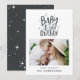 Bebé su fría tarjeta de vacaciones de Navidades de tipografía afuera. Texto escrito a mano, nieve, estrellas y diseño. Ideal para decoración boda, duchas para bebés, Navidades y fiestas de nuevos años, fiestas de cumpleaños y eventos de invierno.