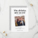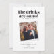 Esta divertida tarjeta de guardar la fecha de boda presenta la frase "Las bebidas corren por nuestra cuenta - la resaca es tuya" - seguro que hará reír a tus invitados y les dará una idea de la divertida fiesta de boda que no querrán perderse. ¡Personalízala! ¡Cambia los colores y las fuentes para que coincidan con el estilo de tu boda!