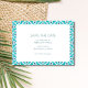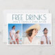 Celebra tu amor con nuestras bebidas gratis 2 Photo Beach Wedding Save the Date. El frente muestra un divertido diseño fotográfico de 2 con el alegre mensaje 'Bebidas gratis y un feliz siempre después'. En la parte posterior, encontrará los detalles de su boda enmarcados por un vibrante borde de azulejos español, lo que añade un toque de diversión y brillo. Ideal para invitar a sus invitados a una fiesta de bodas en la playa.