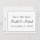 Una hermosa tarjeta de guardar la fecha, este diseño retrata un fondo blanco con un tipo de letra negro, guardar la fecha de su boda con estas encantadoras invitaciones. Usando plantillas fáciles de usar, personaliza la tuya hoy!