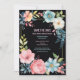 Tarjetas florales vintage de aquarela para guardar la fecha de la boda con el diseño de flores envueltas en un marco, con los colores rosa, azul, verde y fondo negro. Muy bonito y lindo.