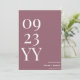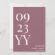 Anuncie su día especial con la fecha Big Bold Dusty Pink Save the Date. Con un suave fondo rosado polvoriento con letras y números en negrita, este diseño minimalista muestra de forma destacada su fecha boda junto a los nombres del novio y la novia. Perfecto para los bodas modernos, románticos o boho, esta carta combina sencillez y encanto, asegurando que sus huéspedes marquen sus calendarios con emoción.