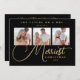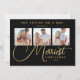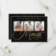 Exquisite Modern Wedding Christmas 3 Photos in Fake Gold and Black Holiday Card as a Save the Date Card.