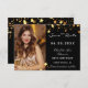 On front: Add a vertical size photo. A classic black background color, decorated with faux gold stars. Personalize and add a name and details. White letters. For both him and her.